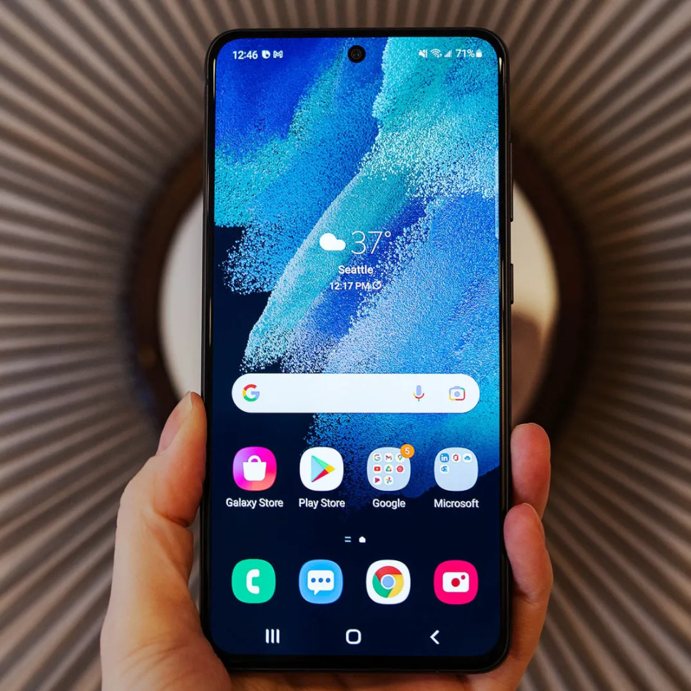 S21 FE hadir dengan Android 12 One UI 4.0 dan semua opsi penyesuaian sistem baru yang ditawarkannya. Jika Anda menetapkan gambar sebagai wallpaper, telepon akan menyarankan palet warna pelengkap untuk diterapkan pada tombol dan ikon. Anda juga dapat menskalakan dan menyesuaikan layar beranda dan wallpaper layar kunci secara mandiri. Yang terbaik dari semuanya, aplikasi cuaca stok tidak lagi menampilkan iklan yang menonjol di bagian atas layar – hanya beberapa tautan ke artikel Saluran Cuaca clickbaity di bagian bawah, yang dapat saya gunakan.