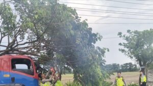 Bursanasional.com – PATI || Respon cepat kembali ditunjukkan Polresta Pati dalam penanganan kedaruratan di wilayah setempat. Sebuah pohon trembesi berdiameter sekitar 80 sentimeter tumbang dan menutup akses Jalan Lingkar Selatan Ngantru, Pati, pada Sabtu siang (06/12/2025) sekitar pukul 13.00 WIB, hingga berpotensi memicu kemacetan dan membahayakan pengguna jalan.