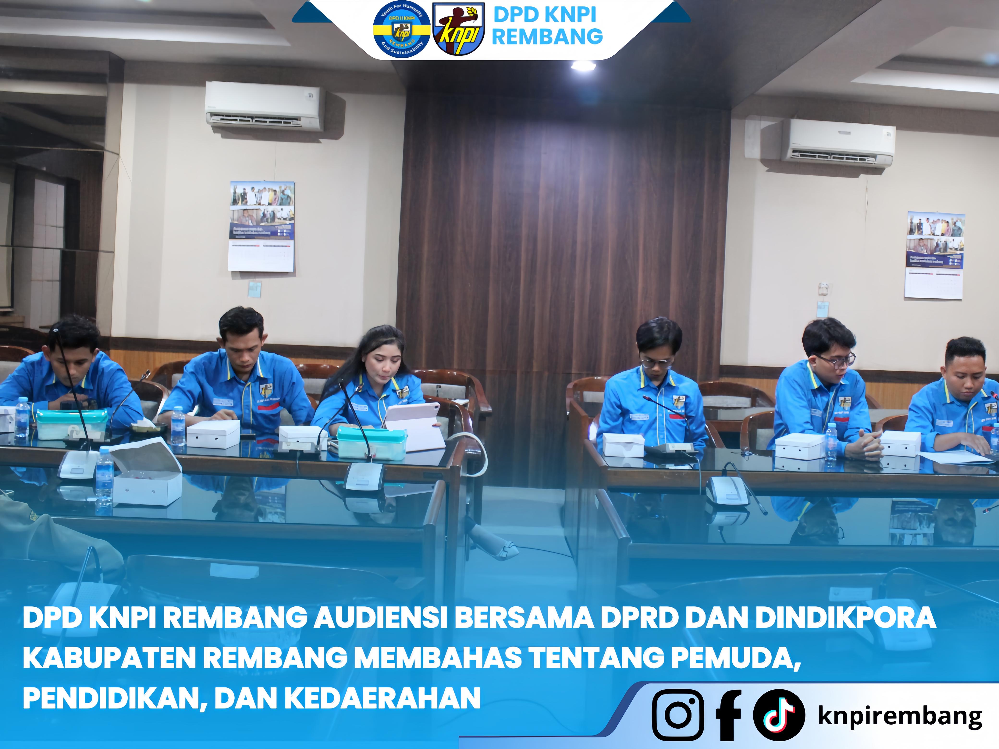 REMBANG – Dewan Pengurus Daerah Komite Nasional Pemuda Indonesia (DPD KNPI) Kabupaten Rembang menggelar audiensi dengan DPRD Kabupaten Rembang, Senin (30/3/2026). Pertemuan ini membahas sejumlah isu strategis, mulai dari kepemudaan, pendidikan, hingga pembangunan daerah.