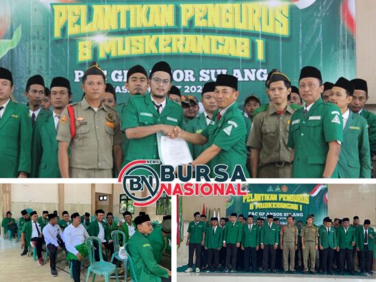 Bursanasional.com || Rembang – Pimpinan Anak Cabang (PAC) Gerakan Pemuda Ansor Kecamatan Sulang resmi dilantik untuk masa khidmat 2025–2028 dalam kegiatan yang berlangsung khidmat di Kantor Kecamatan Sulang, Minggu (12/04/2026).